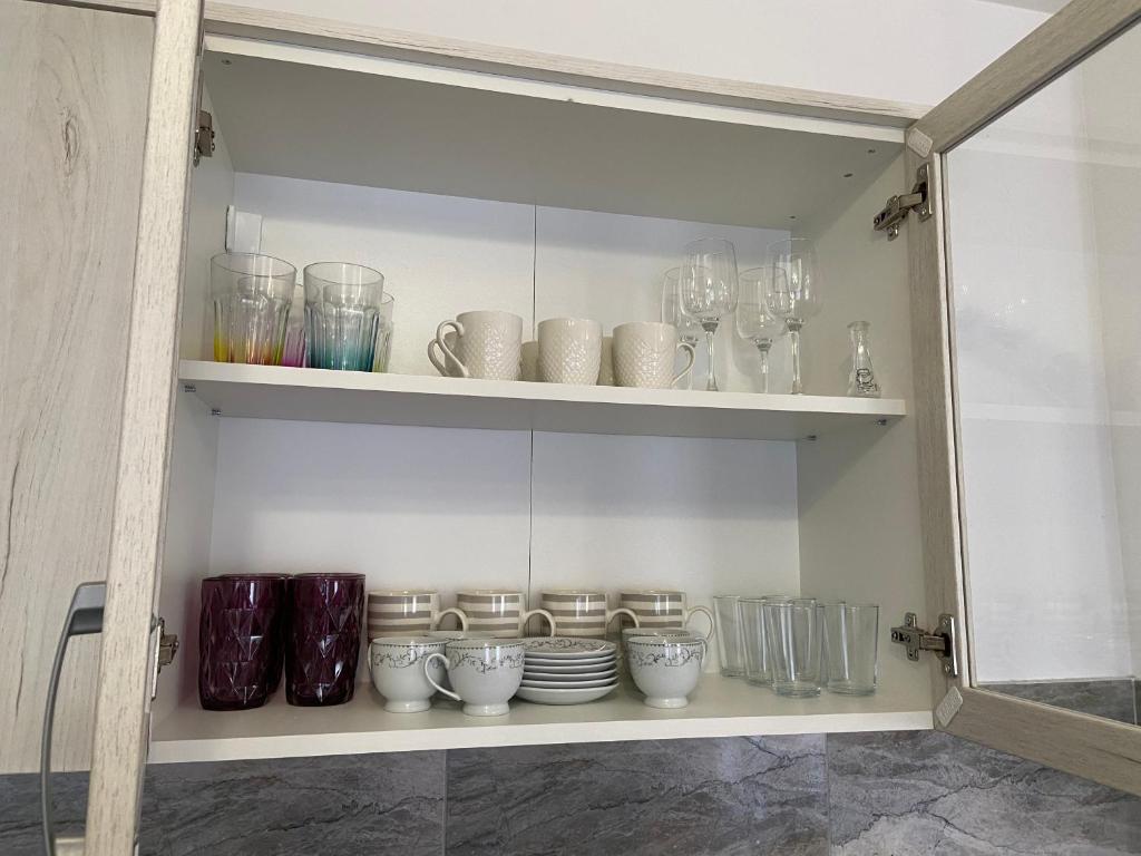 frižider, mašina za pranje veša, kuhinja, električno kuvalo, posuđe, rerna, ploča za kuvanje, sto za ručavanje, čaše za vino