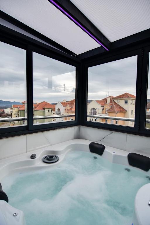 IN LUX SPA APARTMAN nudi više bazenskih sadržaja, uključujući zatvoreni bazen (tokom čitave godine), bazen na krovu, bazen za sedenje i ograda oko bazena.